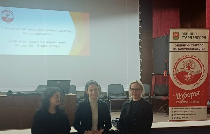Ученици от СУ „Железник“ и СУ „Максим Горки“ гледаха филм и презентация в ОДМВР-Стара Загора. Експерти от общинския център по зависимости обясниха етапите на пристрастяването и отговаряха на въпроси.