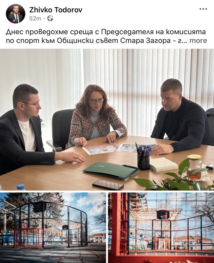 Днес проведохме ползотворна среща с председателя на комисията по спорт към Общински съвет Стара Загора – г-жа Чахова. Обсъдихме вдъхновяваща идея за развитие на спорта в междублоковите пространства и кварталите на града.