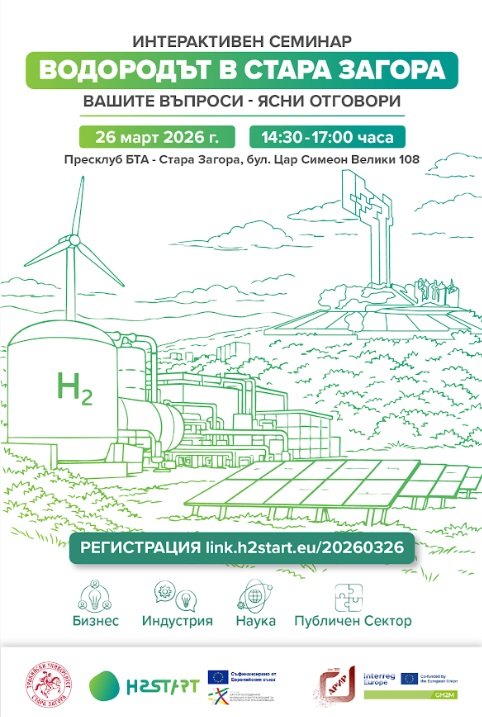 На 26 март 2026 г. в Пресклуба на БТА в Стара Загора ще се проведе интерактивен семинар. Темата е „Водородът в Стара Загора: Вашите въпроси – ясни отговори“. Очакват се представители на бизнеса, публичния сектор и научната общност.
