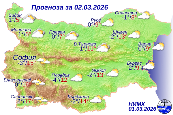 Времето на 2 март: Предимно слънчево, мъгли в Дунавската равнина и по Черноморието