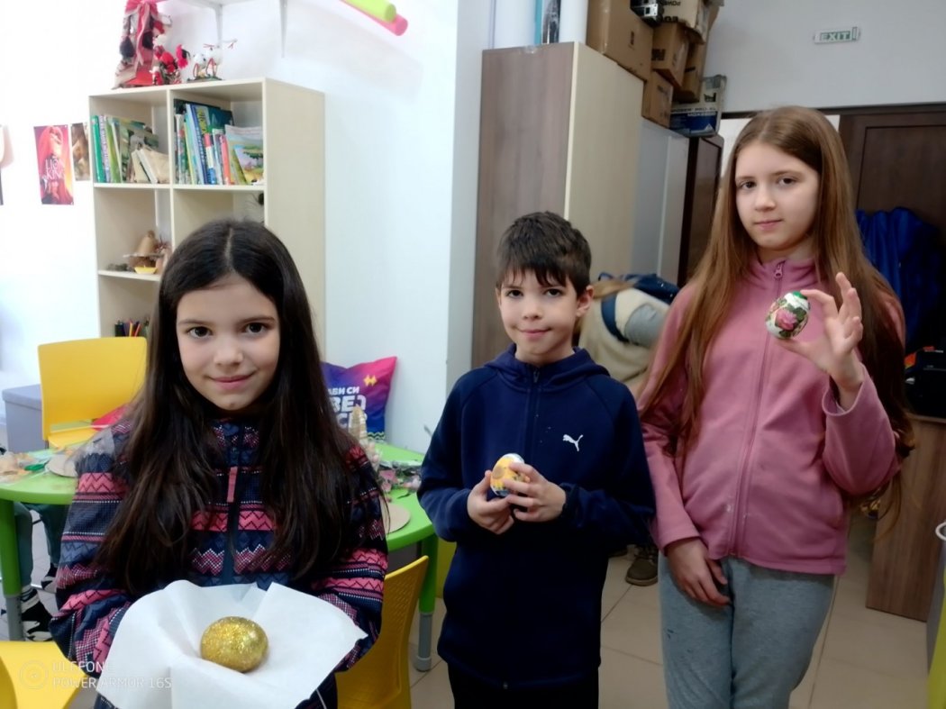 С помощта на екипа на зооградината участниците изработиха тематични украси. Децата украсиха яйца и празнични елементи. Те научиха различни техники за декорация. По време на заниманията споделиха и семейните си обичаи за Великден.